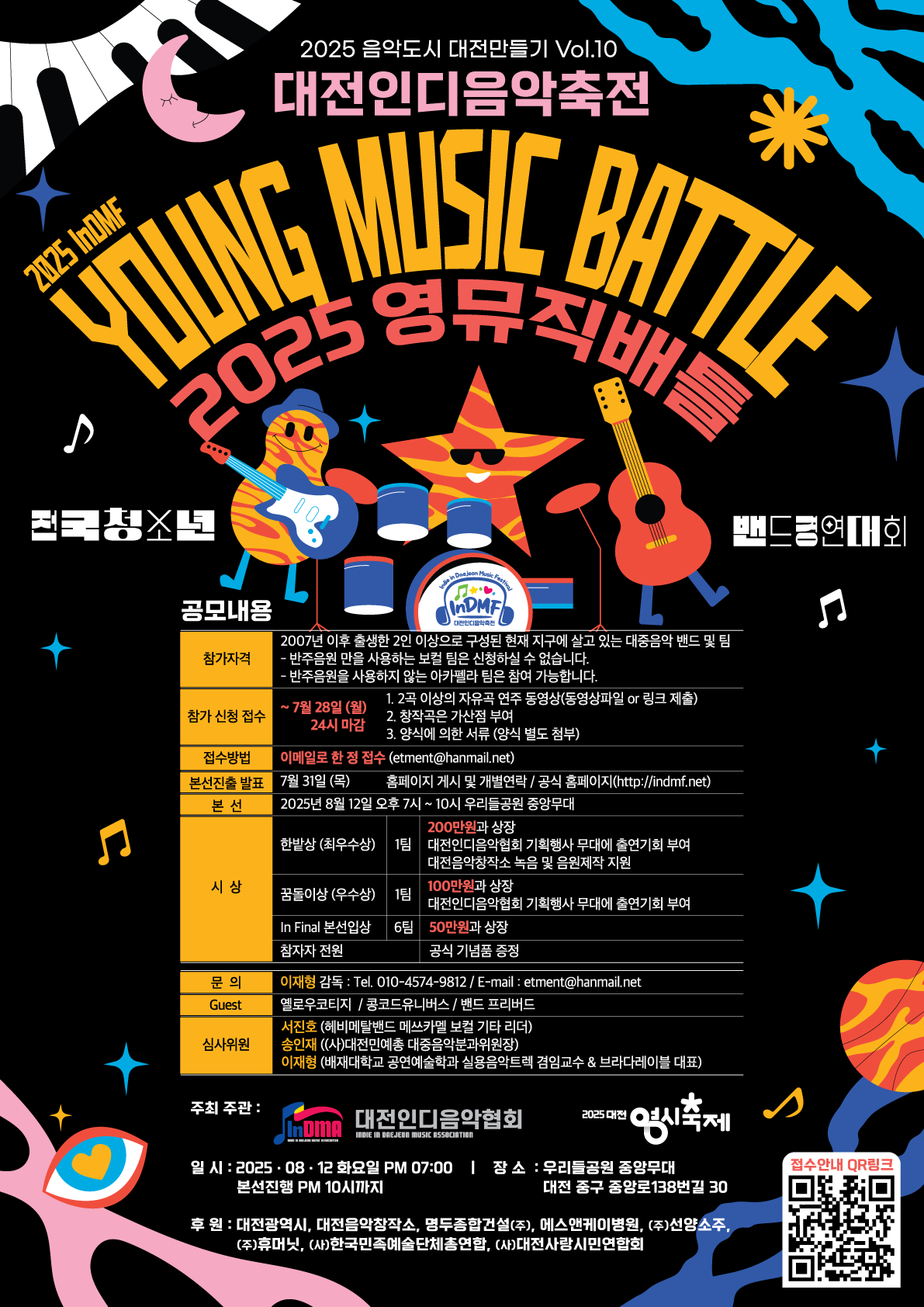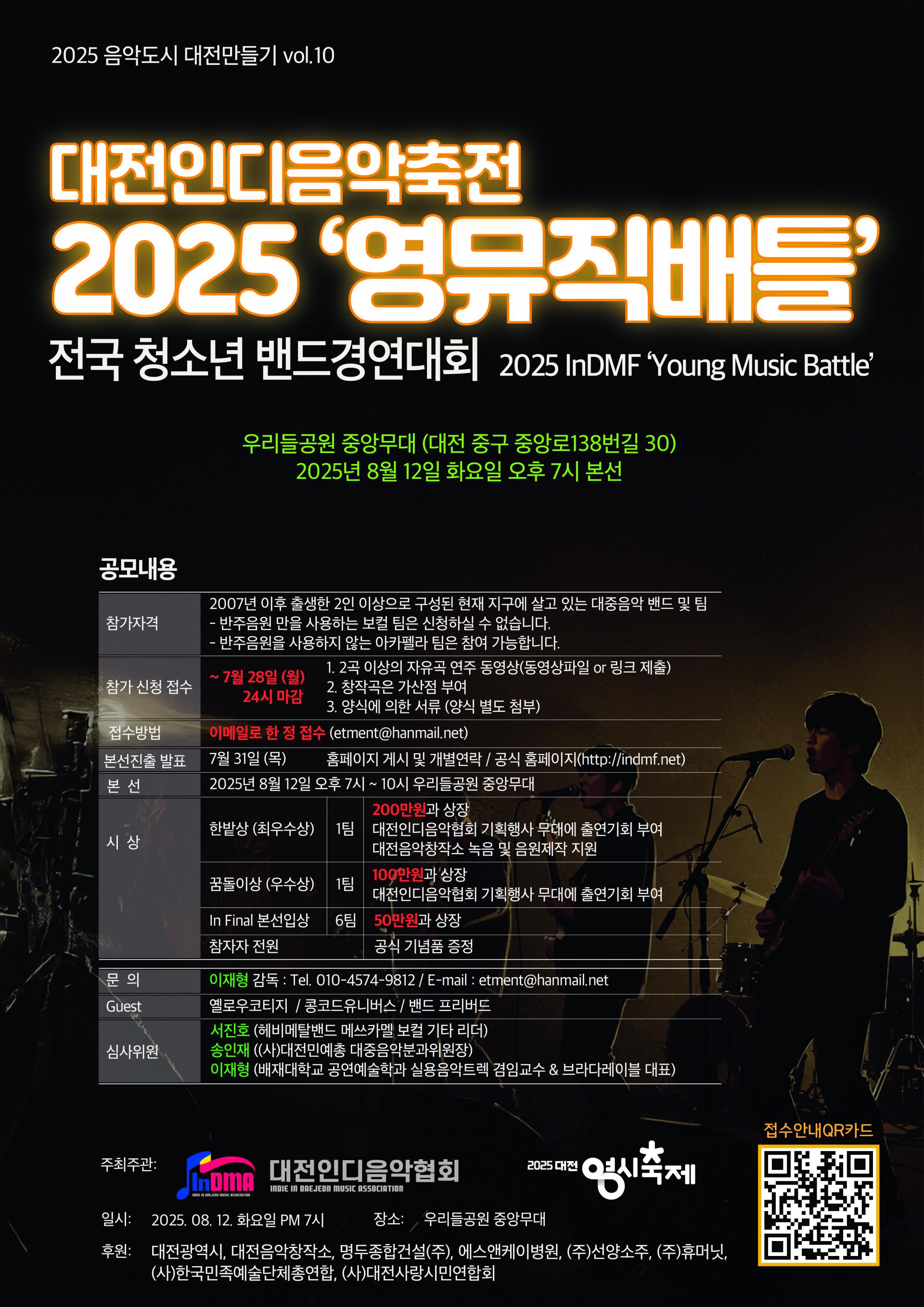 2025 영뮤직배틀 전국 청소년밴드 경연대회 본선진출 팀을 첨부파일과 같이 발표 합니다.